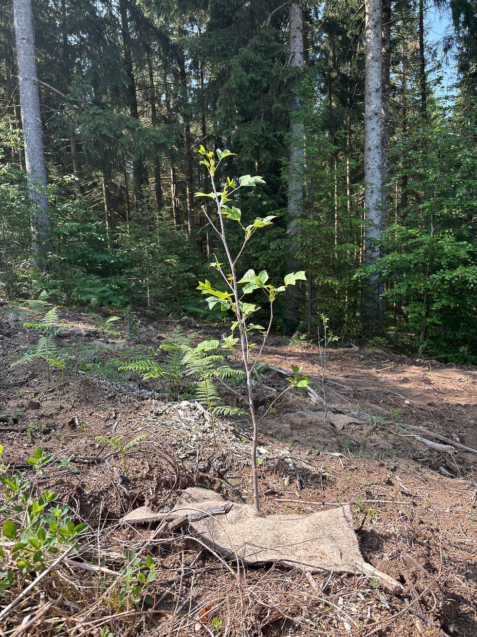 En forêt, la dalle limite l’enherbement autour du plant, évitant ainsi un premier dégagement après plantation et réduisant la concurrence en eau.